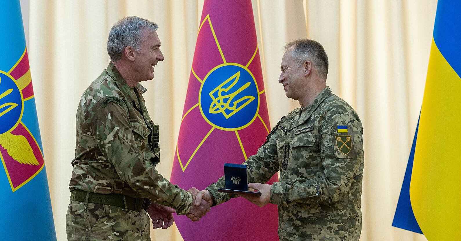 Головнокомандувач ЗСУ Олександр Сирський провів зустріч із начальником Штабу оборони Великої Британії адміралом сером Ентоні Радакіном та його наступником на посаді, головним маршалом авіації сером Річардом Найтоном. Про це Сирський написав у соцмрежах.Як зазначається, ці переговори стали черговим свідченням дієвого стратегічного партнерства України та Сполученого Королівства у військовій галузі.Сирський розповів колегам про оперативну обстановку на фронті, можливі шляхи розвитку двосторонньої співпраці та першочергові потреби Сил оборони України в озброєнні і військовій техніці. Це системи ППО і ракети, артилерійські системи, РСЗВ тощо."На жаль, це був останній офіційний візит в Україну сера Ентоні Радакіна на посаді начальника Штабу оборони Великої Британії", – зауважив Сирський.Головнокомандувач ЗСУ висловив серу Радакіну та в його особі – уряду і всьому народу Британії глибоку вдячність за величезний внесок у розвиток спроможностей Сил оборони України, консолідацію міжнародної підтримки та військової допомоги для відбиття російської агресії."Саме адмірал Ентоні Радакін протягом цих чотирьох років був головним лобістом надання Україні летального озброєння, починаючи з 2 тисяч протитанкових комплексів NLAW напередодні повномасштабного російського вторгнення", – наголосив Сирський.Також Сирський вручив серу Ентоні Радакіну найвищу відзнаку Головнокомандувача Збройних Сил України – почесний нагрудний знак "Хрест заслуги"."Впевнений, що британська підтримка України залишатиметься такою непохитною і з наступним начальником Штабу оборони Великої Британії – головним маршалом авіації сером Річардом Найтоном", – резюмував Сирський.